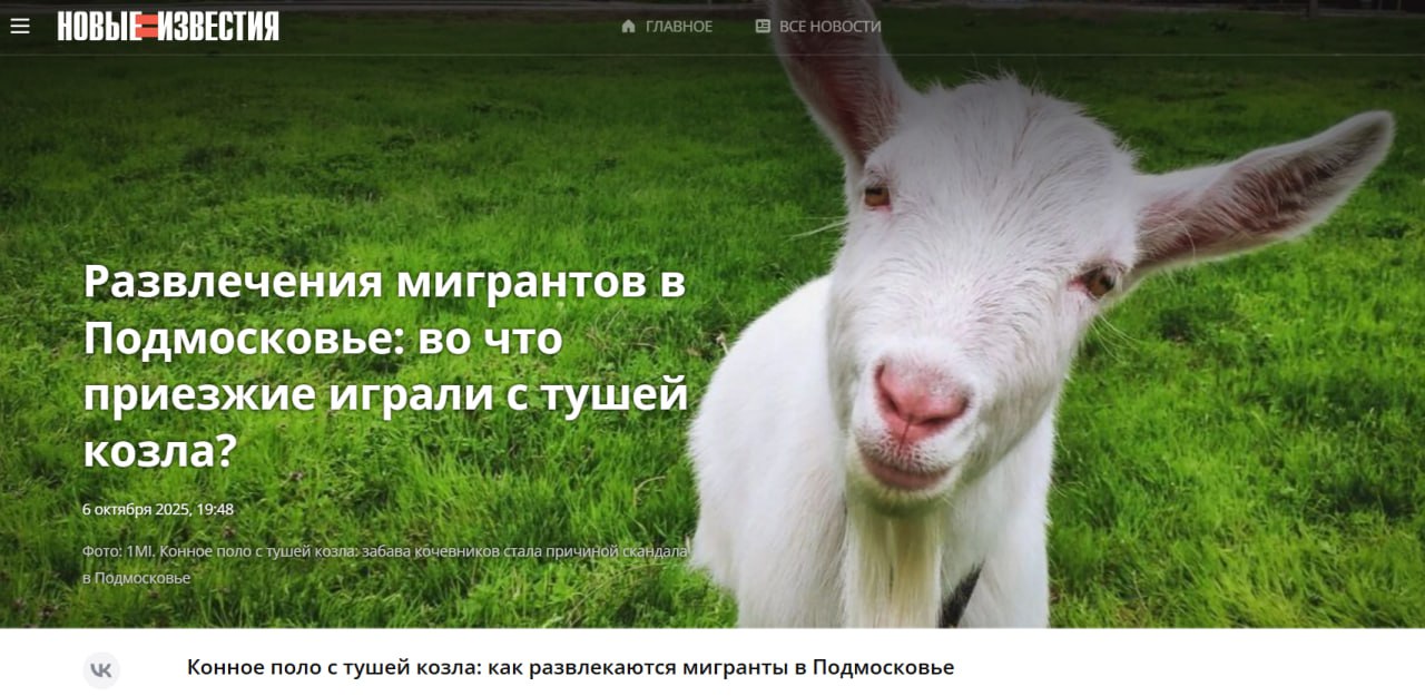В подмосковной деревне Коняшино собрались сотни выходцев из Средней Азии, чтобы сыграть в кок-бору — игру, где вместо мяча используется обезглавленный труп козла (видео).