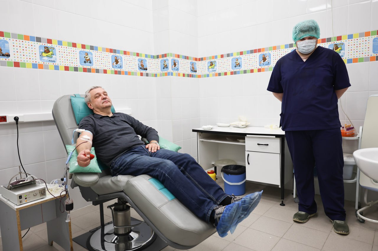 Сегодня на донацию сюда приехали председатель окружного Совета депутатов Андрей Гореликов и депутат Григорий Шаповалов.