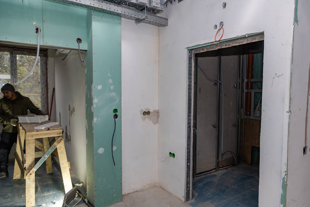 Фасад и кровля завершены, сейчас рабочие монтируют тепловые сети, водоснабжение и водоотведение. Внутри выполняется предчистовая отделка, далее — чистовая.