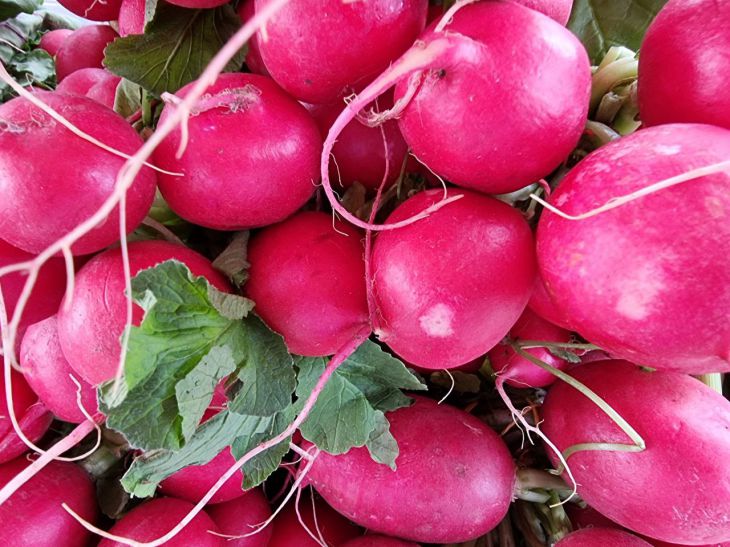 Первым гостем на наших грядках является хрустящий редис, в котором содержится всего 14 ккал на 100 граммов.