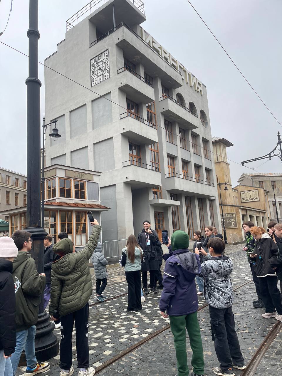 Ребята узнали, как создаются фильмы, и погрузились в мир киноиндустрии. Они увидели самый большой хромакей в Европе и смогли прогуляться по декорациям, воспроизводящим Древнюю Русь, довоенную Москву и Берлин 1941 года.