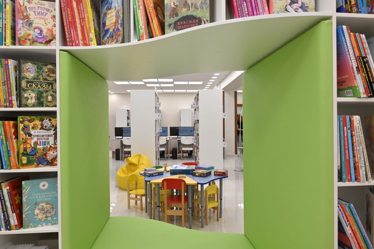 просторную зону абонемента с навигациейяркую детскую площадку с развивающей литературой
