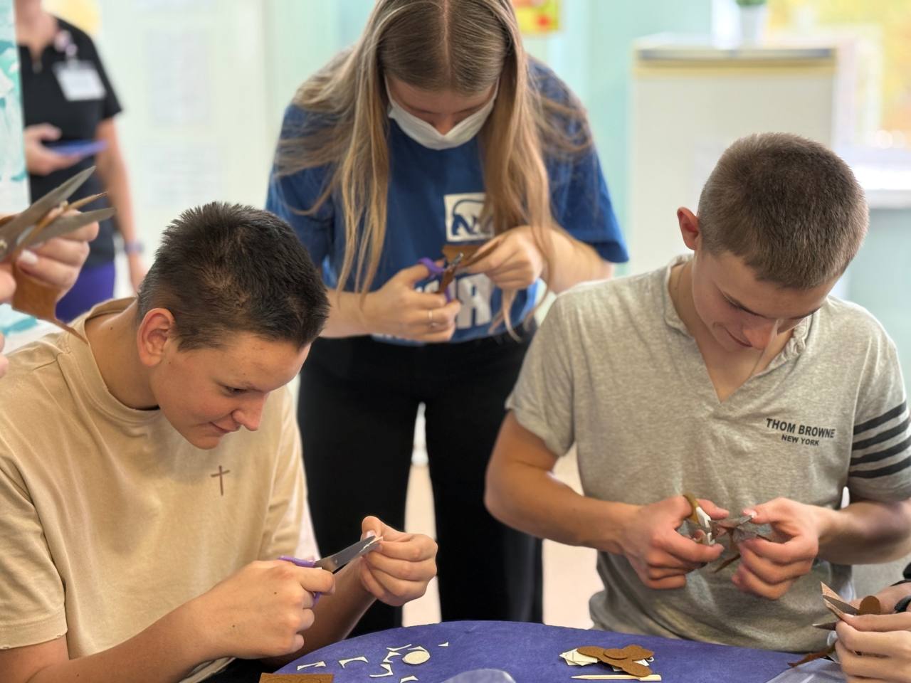 В «Доброй комнате» Солнечногорской ЦРБ снова звучал детский смех. Вместе с ребятами, которые проходят длительное лечение, молодогвардейцы собирали любимого героя – Чебурашку из бумаги и картона.