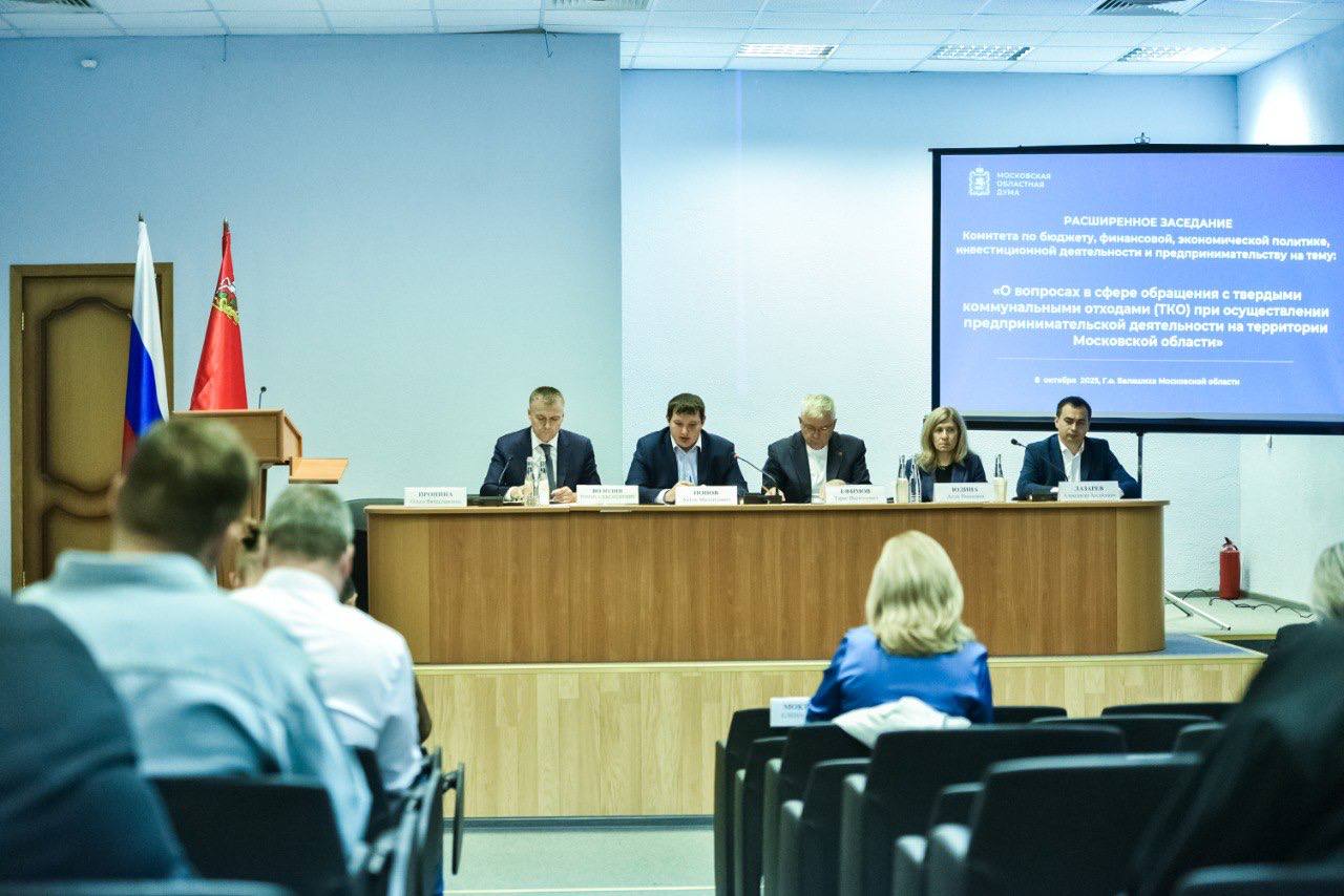 Комитет Мособлдумы по бюджету, финансовой, экономической политике, инвестиционной деятельности и предпринимательству провели расширенное заседание "О вопросах в сфере обращения с твердыми коммунальными отходами при осуществлении предпринимательской деятельности на территории Московской области" в Балашихе. В мероприятии принял участие председатель комитета Тарас Ефимов, заместитель министра по содержанию территорий и государственному жилищному надзору Московской области Антон Попов.
