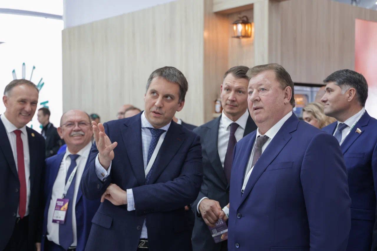 Сегодня Заместитель Председателя Правительства Московской области Вячеслав Духин рассказал Председателю комитета Госдумы РФ по аграрным вопросам Владимиру Ивановичу Кашину и Председателю Комитета Совета Федерации по аграрно-продовольственной политике и природопользованию Александру Двойных о составе экспозиции.