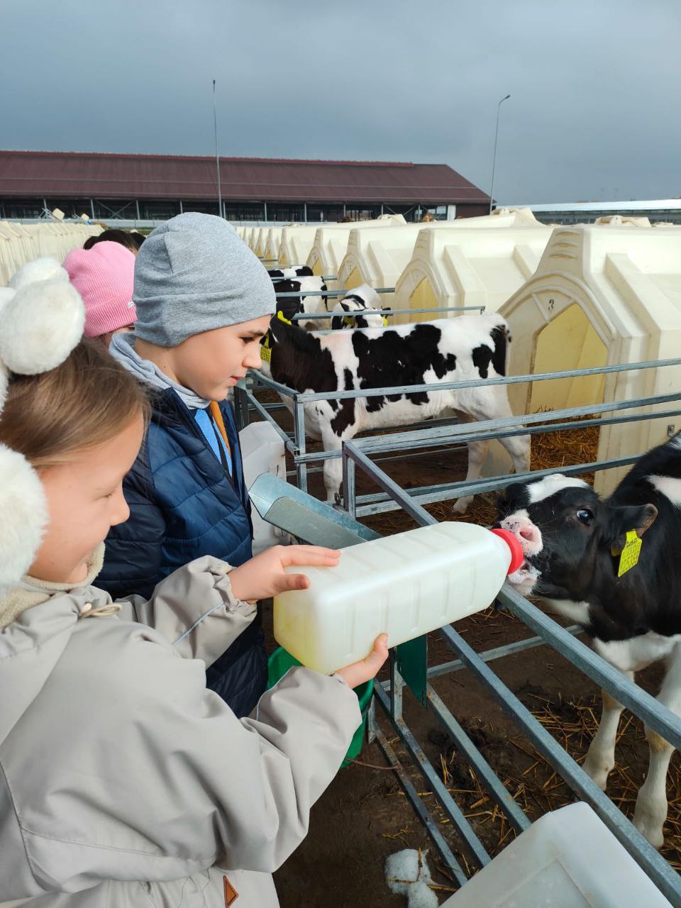 Ребята 3 а и 3 в весело и интересно провели день каникул.Ребята узнали как живут телята и коровы,для чего буренкам и телятам в ушах" сережки",почему коровы 3 раза в день катаются на "Карусели",покормили телят из бутылочки.