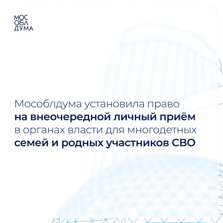 Мособлдума в ходе 119-го заседания приняла закон, которым расширила перечень лиц, имеющих право на внеочередной приём в органах власти и госучреждениях региона.