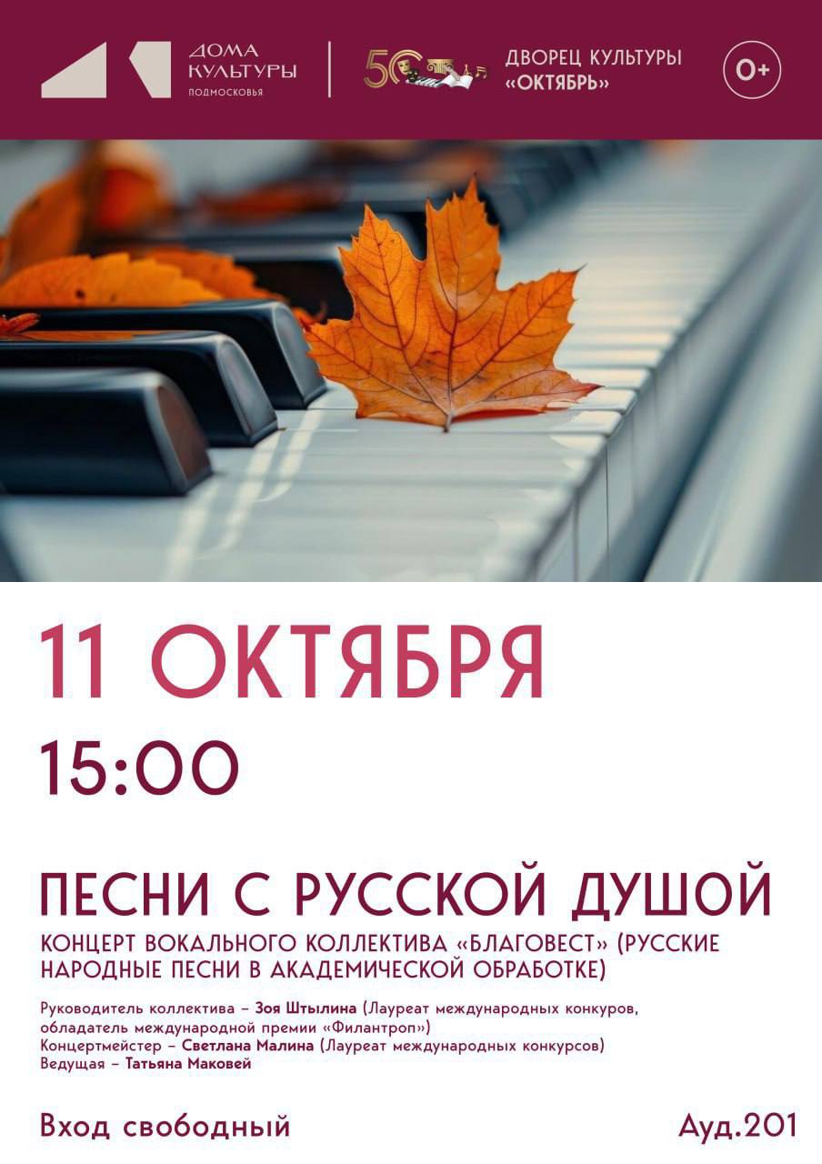 Дворец культуры «Октябрь» приглашает на концерт «Песни с русской душой»