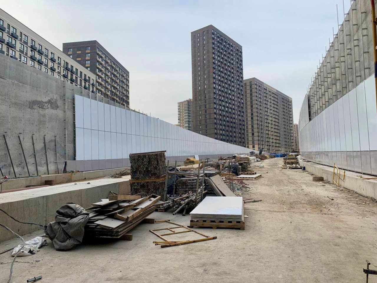 В тоннеле завершено устройство всех буронабивных свай. Сейчас ведутся бетонирование перекрытия тоннеля, облицовка стен панелями «Хардвол» и работы по инженерным коммуникациям. На пешеходном переходе завершены монолитные и отделочные работы. Выполняется монтаж инженерного оборудования.