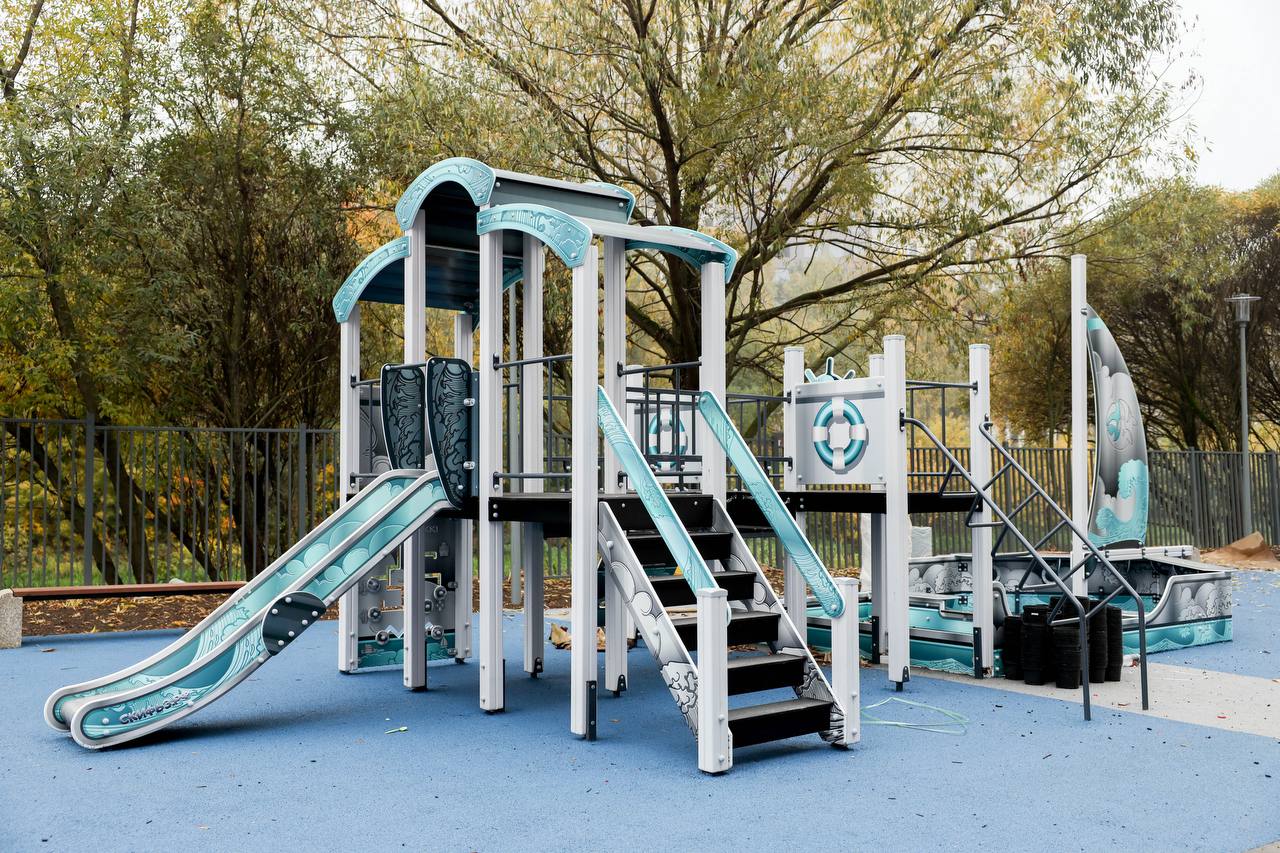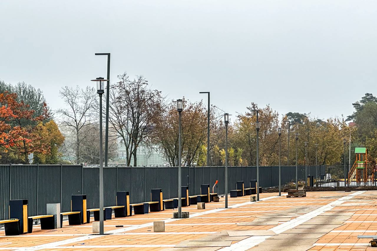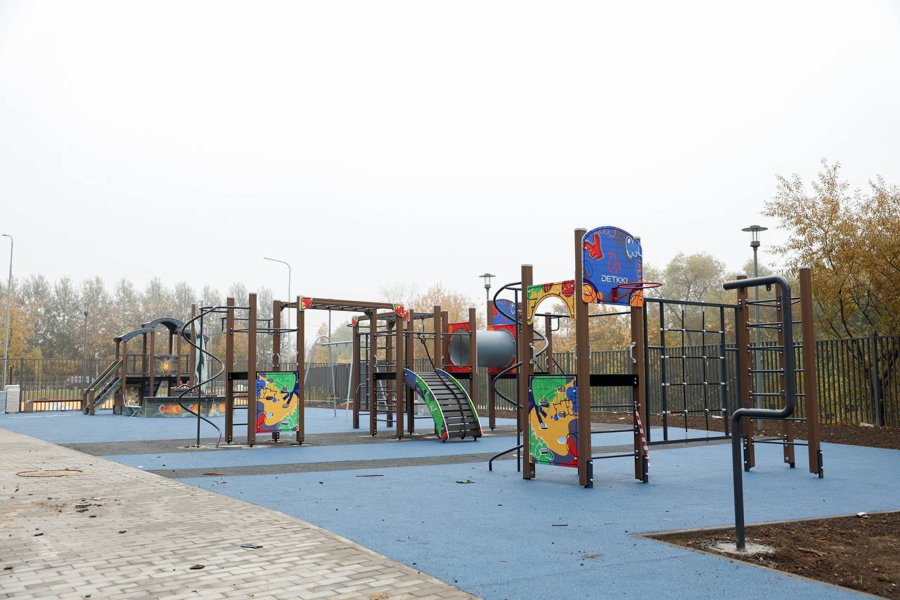 На прилегающей территории проводятся укладка тротуарной плитки, установка детских и спортивных площадок.