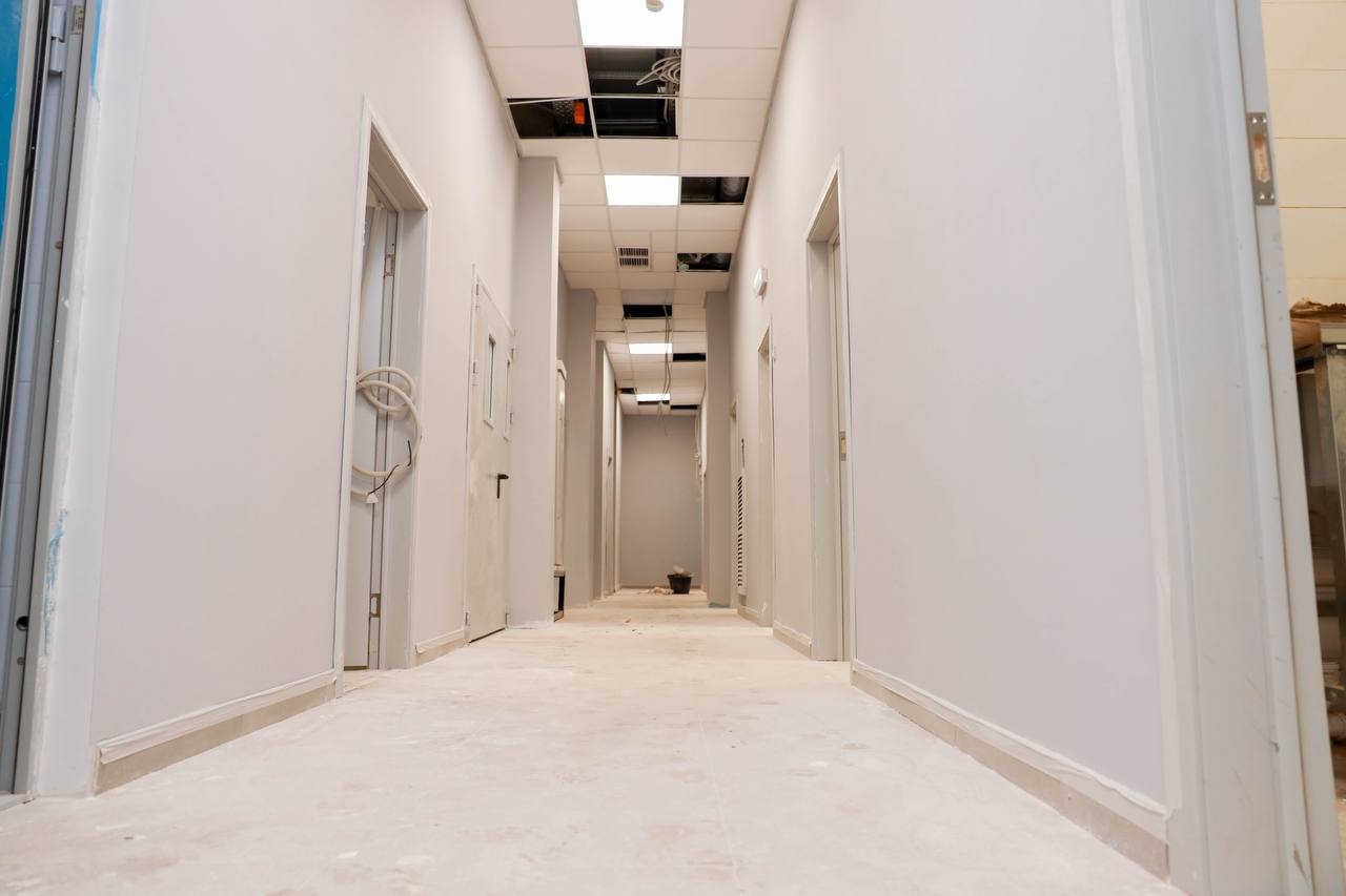 В настоящее время внутри здания ведутся комплекс отделочных работ, сборка мебели и подключение оборудования.