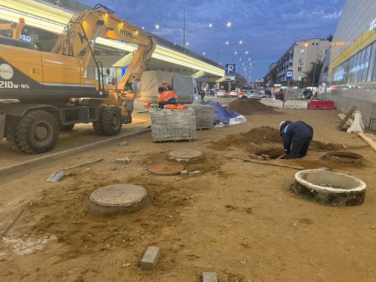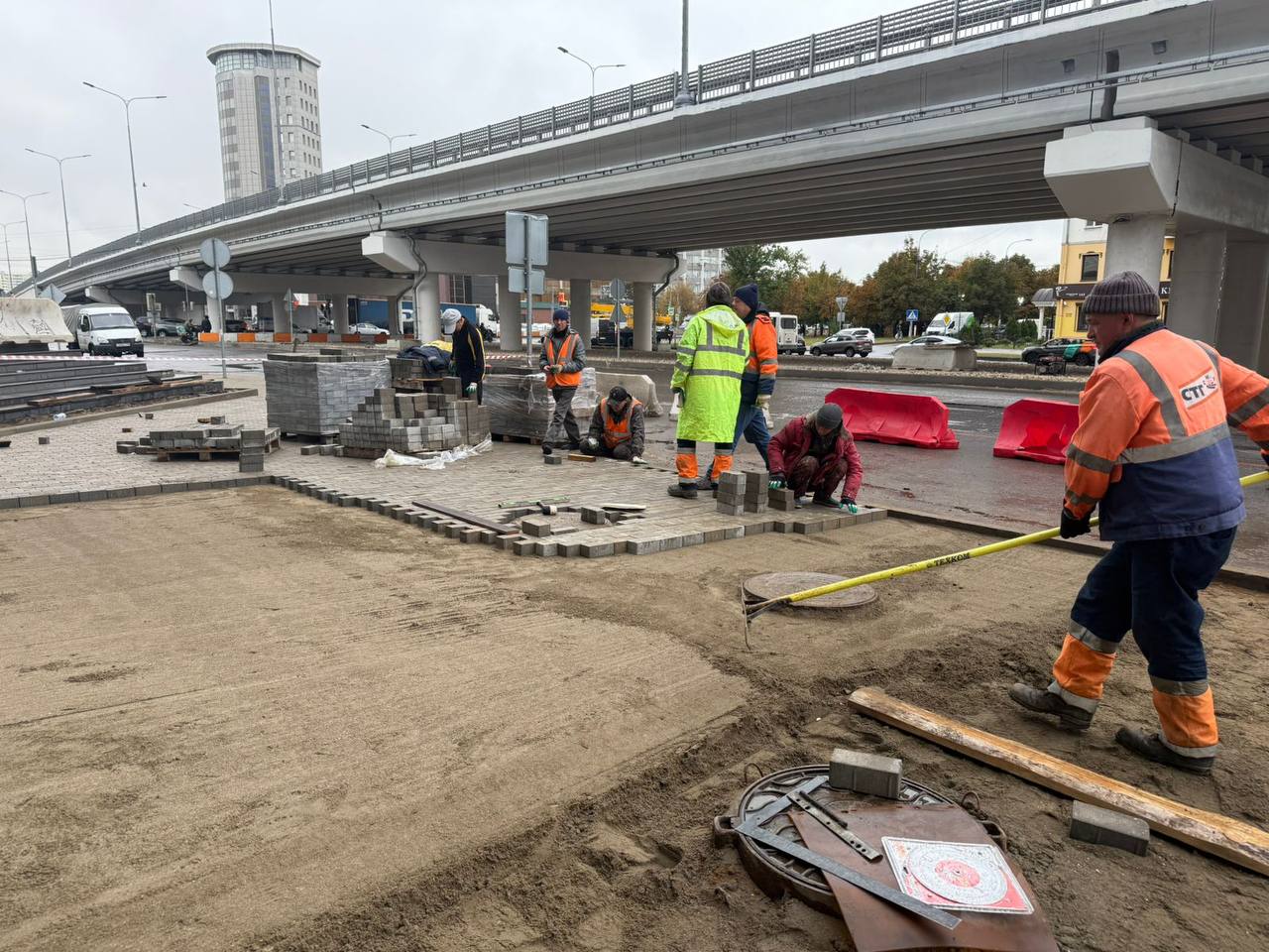Продолжается реконструкция Октябрьского проспекта. В рамках I этапа подрядная организация активизировала работы по благоустройству прилегающей территории.