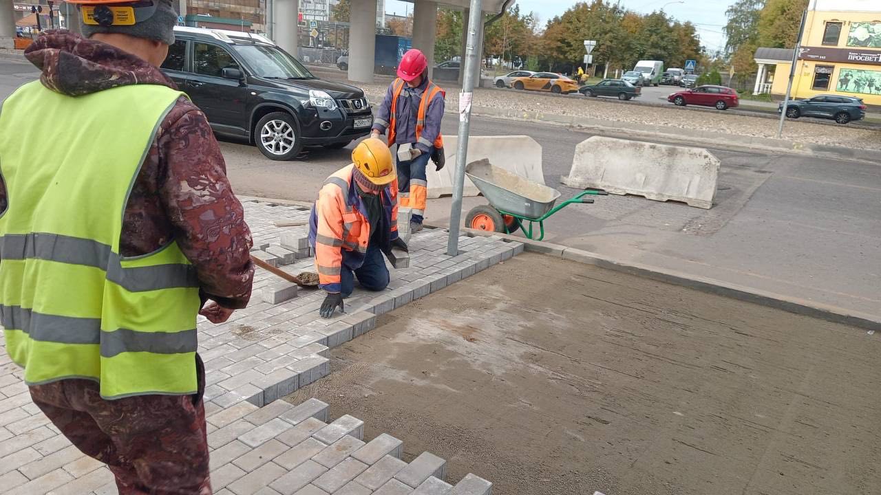 Параллельно специалисты восстанавливают брусчатку и асфальтовое покрытие тротуарной сети - на участке в районе Люберецкого Дворца бракосочетания, вблизи торгового центра (Октябрьский проспект, д. 146).