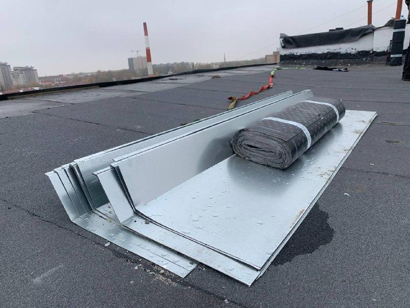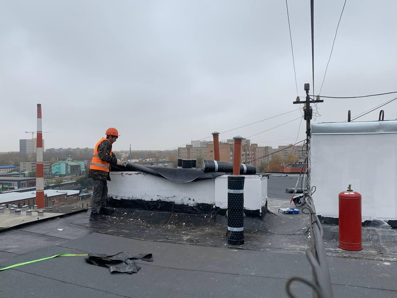 "Мы провели полный демонтаж материалов до плиты, заделали все щели, уложили керамзит, сетку, новую выравнивающую стяжку, первый, а затем второй слои покрытия. В ближайшие дни по краю крыши установят ограждения и завершат примыкание второго слоя", - отметил Алексей Панченко, руководитель проекта ООО "Аркерон".