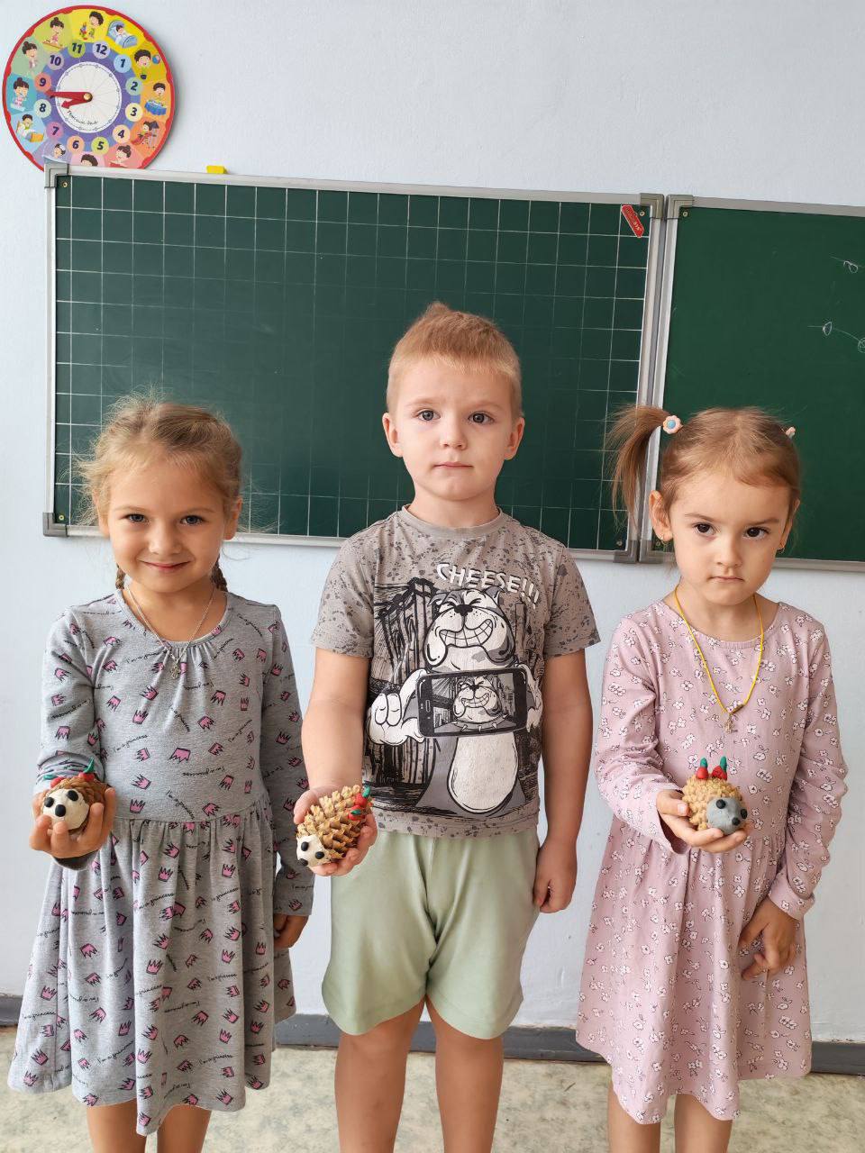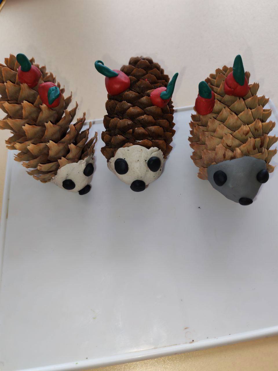 В конце занятия дети были рады своему творчеству. Посмотрите какие симпатичные ежики получились у наших ребят.