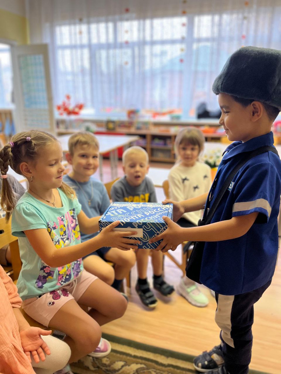 В течение дня с дошколятами была проведена познавательная беседа о профессии почтальона, в ходе которой они узнали о важности работы почтовых служащих и разнообразии почтовых отправлений. В Сюжетно-ролевой игре "Почта" ребята попробовали себя в роли почтальонов, сортировщиков и клиентов.