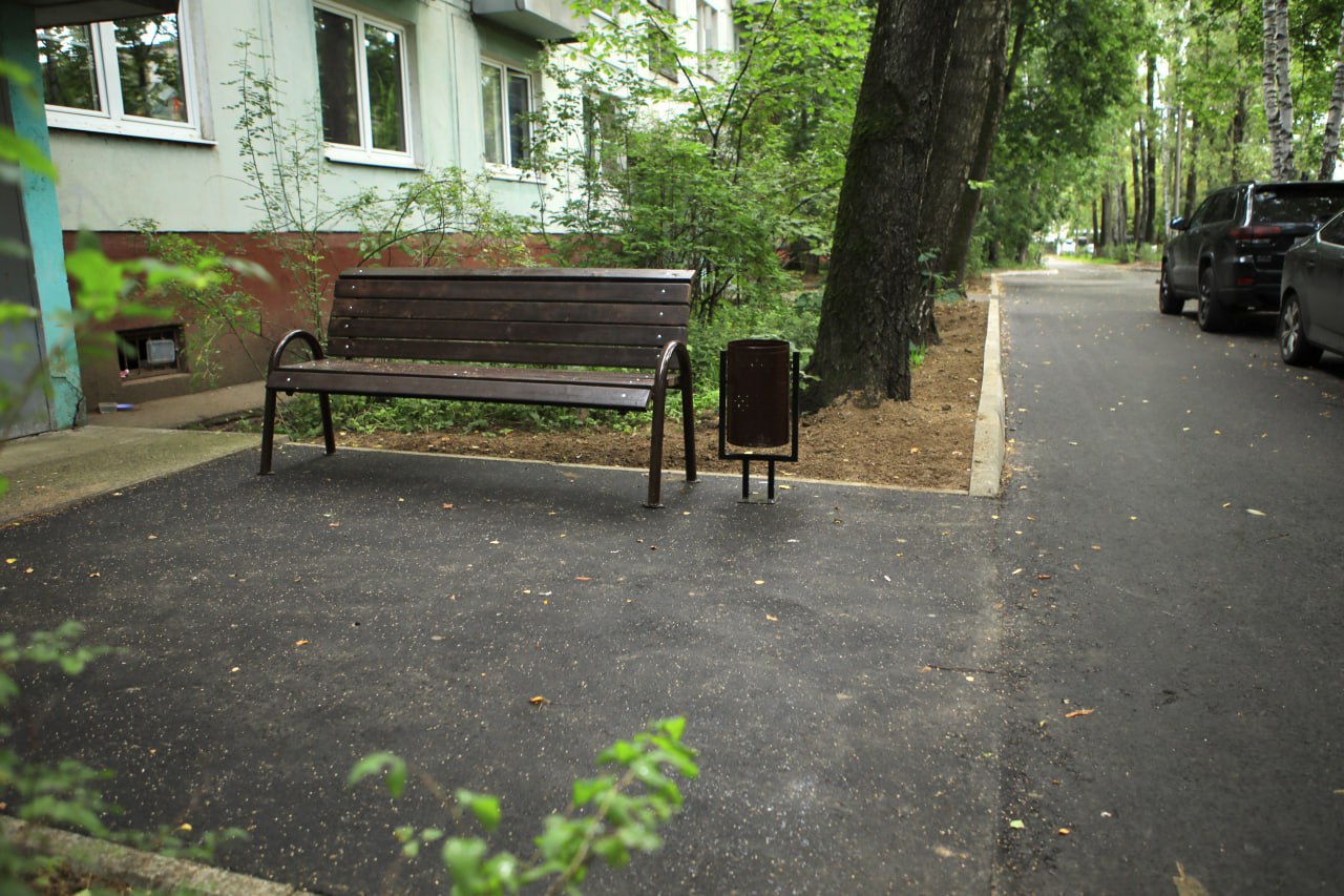 В ходе работ была полностью обновлены внутридворовые проезды и тротуары, заменено асфальтовое покрытие, установлены новые бордюрные камни и созданы удобные подходы к входам в подъезды. Кроме того, оборудованы дополнительные парковочные места и проведено озеленение, а также установлены лавочки и урны.