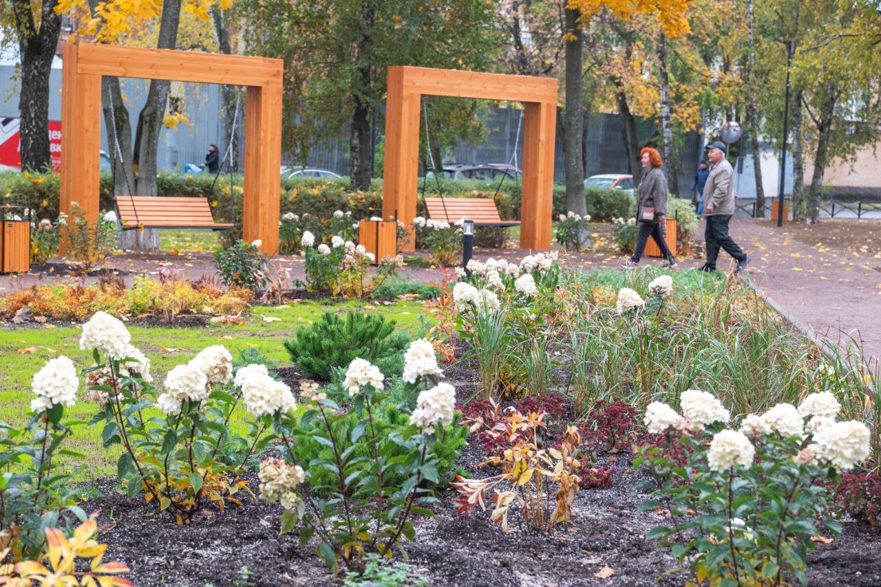 Здесь сделаны пешеходные дорожки, установлены уличное освещение и система видеонаблюдения «Безопасный регион», качели, урны, высажены деревья, кустарники и цветы.