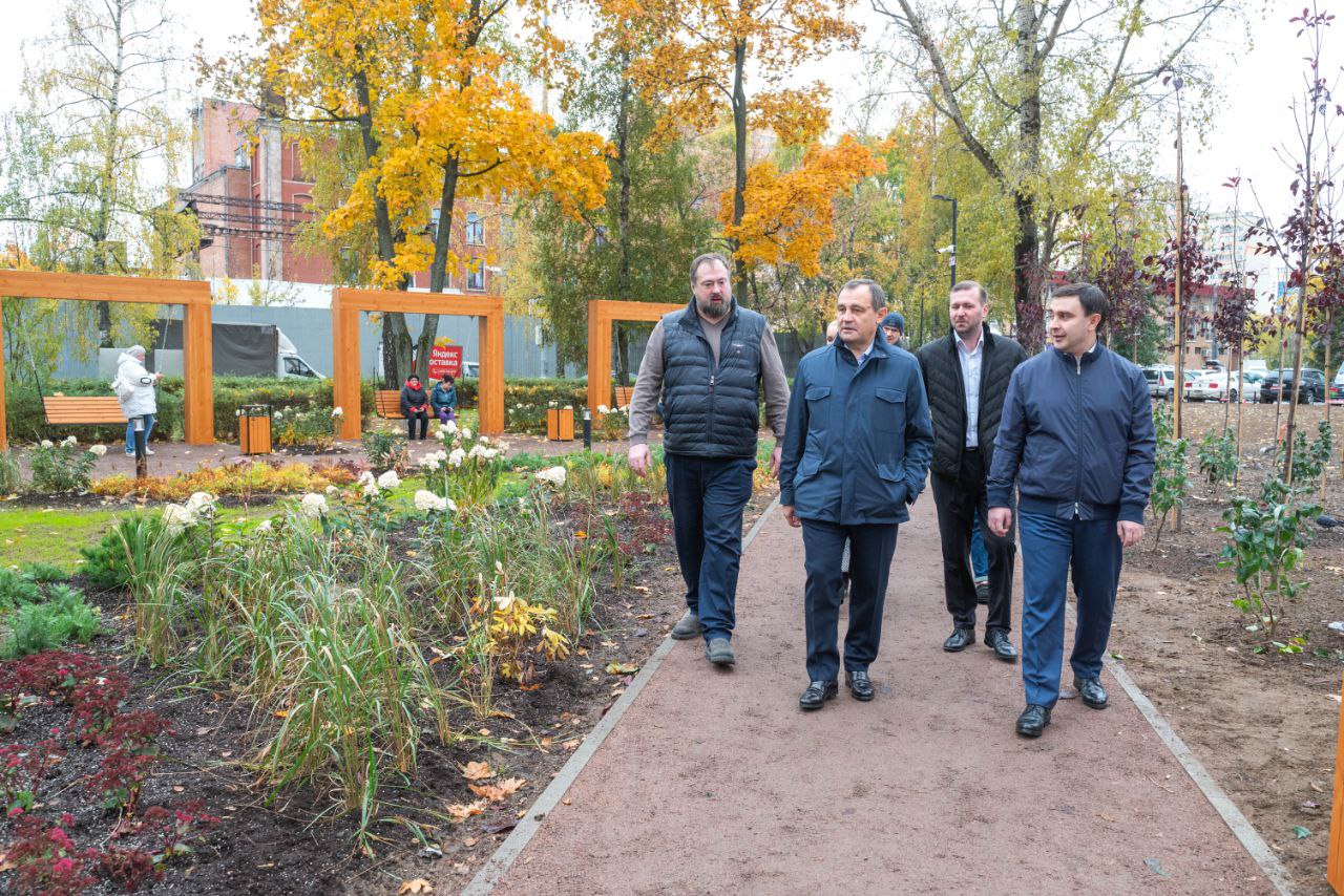 Вместе с председателем Московской областной Думы Игорем Юрьевичем Брынцаловым осмотрели, как выглядит сквер после реконструкции.