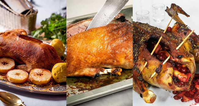 - Утка со сливами и капустой: Это блюдо отлично подходит для зимних праздников. Утка запекается в компании слив и клюквы, а капуста подается отдельно. Прекрасное сочетание сладкого и соленого очень радует гостей.