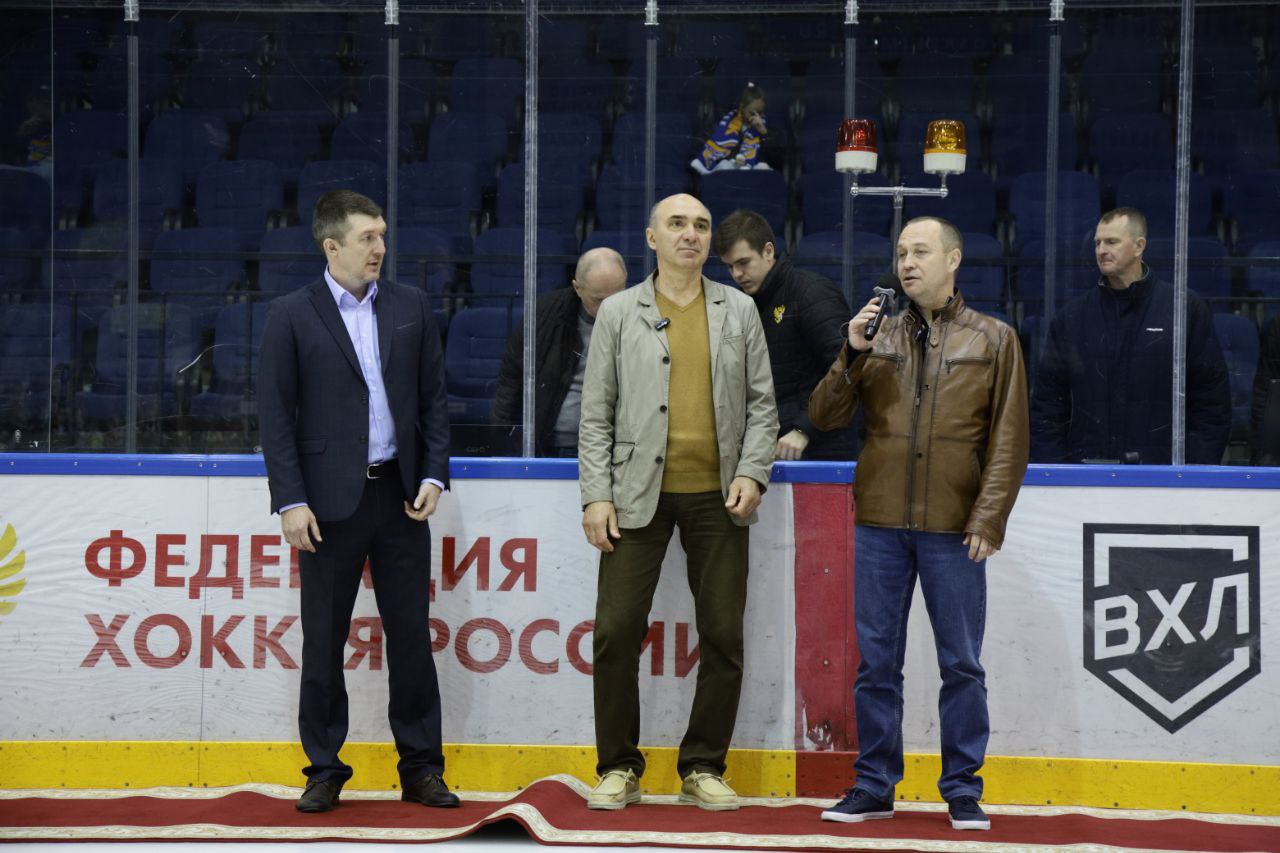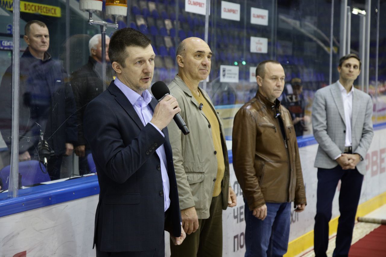 Вместе с нашим знаменитым олимпийским чемпионом Александром Черных и директором "Центра спортивной подготовки по игровым видам спорта № 8" Максимом Бурцовым провёли символическое вбрасывание шайбы и дали старт соревнованиям.