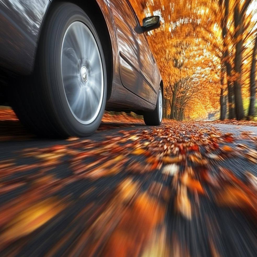 будьте особенно осторожны при движении по участкам дороги, где есть опавшие листья