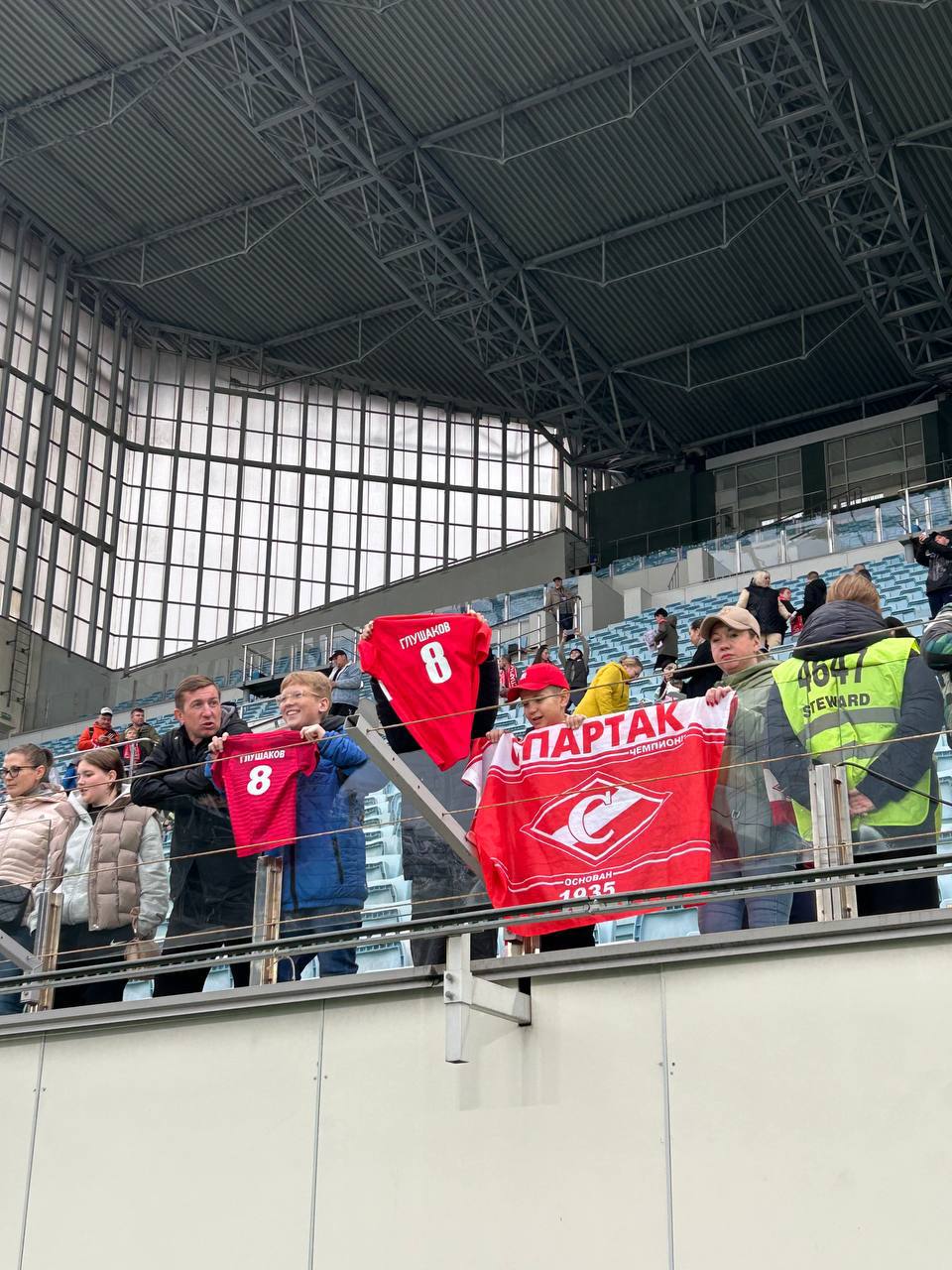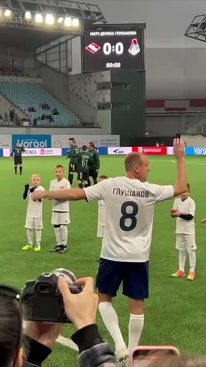 На стадионе «Арена Химки» проходит прощальный матч футболиста Дениса Глушакова