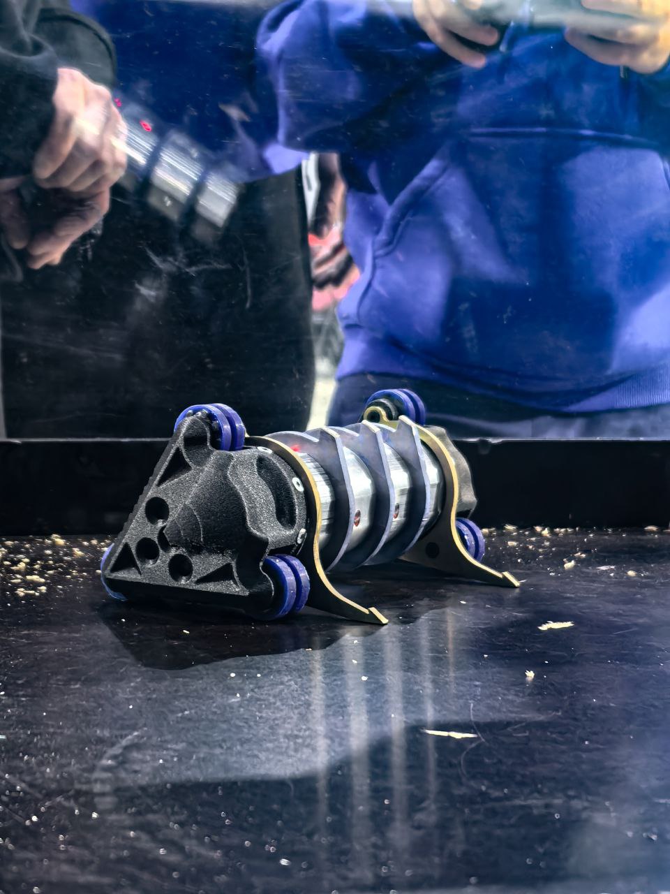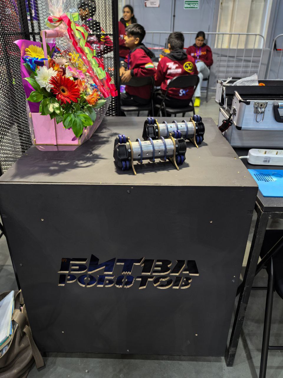 Команда из Балашихи создала передвигающуюся трубу. Все комплектующие уместились в корпус диаметром всего 35 миллиметров и длиной 165 миллиметров, при этом сам робот является орудием. С каждой стороны у него по три вертикально расположенных колеса, что позволяет сохранять подвижность даже при выходе из строя одного из них.