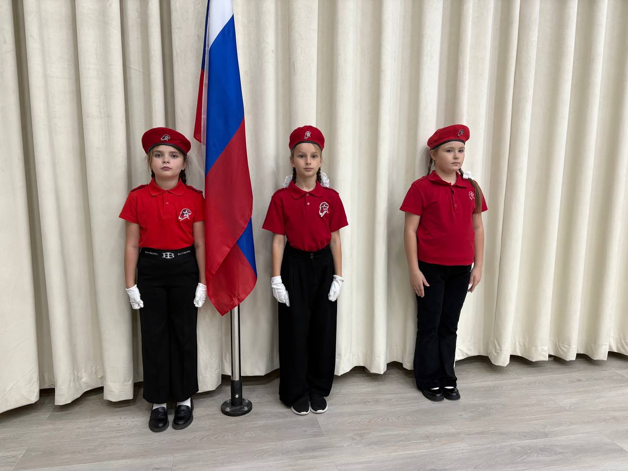 По традиции школы, право поднять флаг РФ было возложено на юнармейцев школы