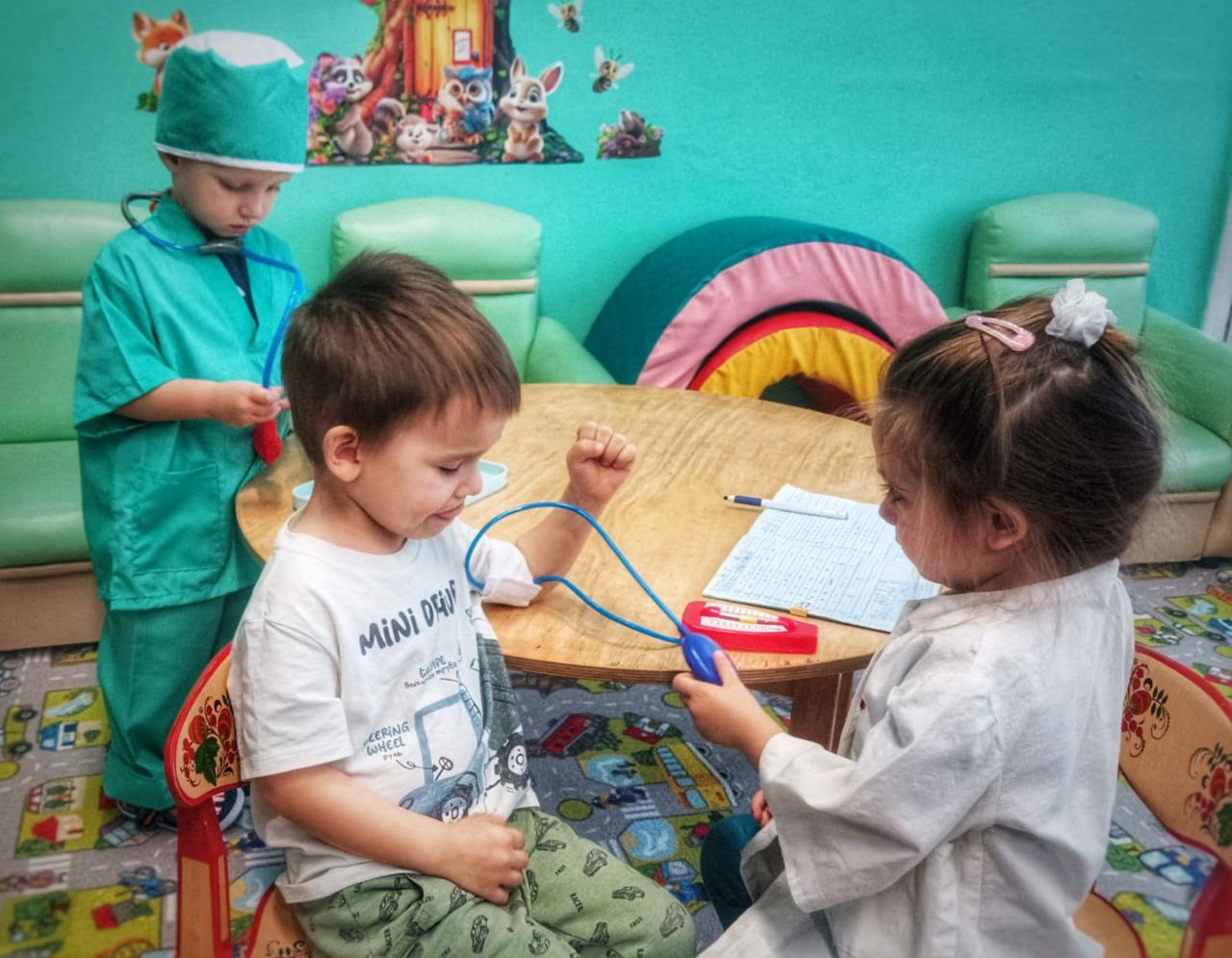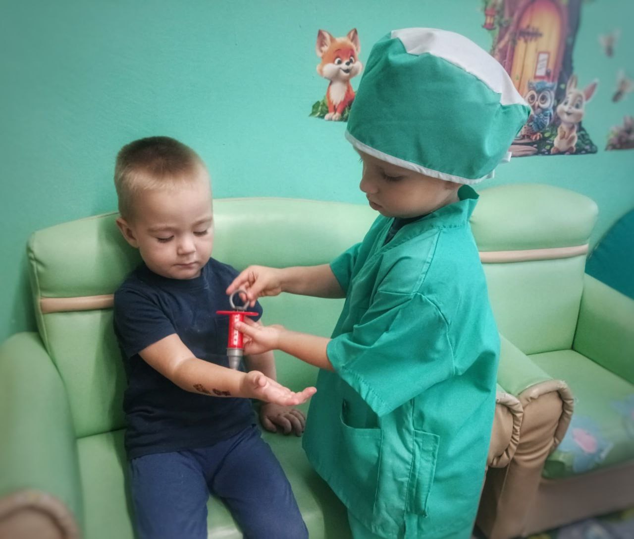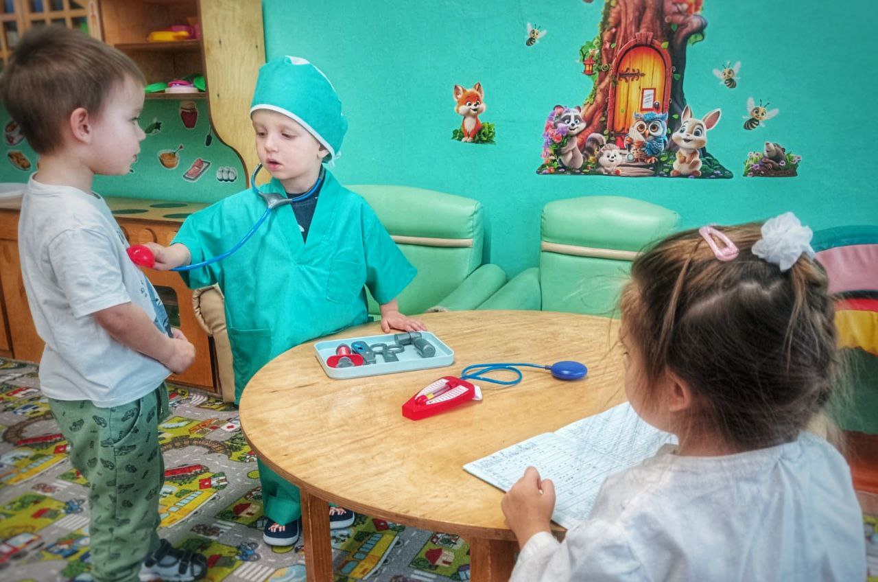 В рамках реализации проекта "Предшкола: стандарт детского сада" в дошкольном отделении гимназии №2 м.о. Чехов (здание 3, п. Васькино) в первой младшей группе №41 на тематической неделе "Профессии" прошло познавательное занятие, на котором дошколята познакомились с разными профессиями, поиграли в сюжетно-ролевую игру "Больница: на приёме у врача" и дидактическую игру "Профессии: подбери правильную картинку".