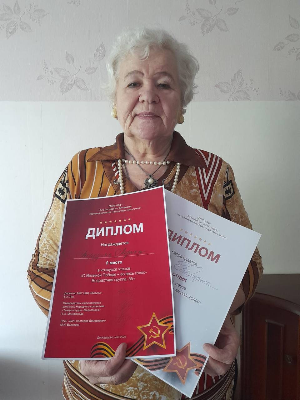 Лариса Ивановна пишет стихи, с одним из них она и выступила в полуфинале. На сцене ей вручил букет её сын, участник СВО, который сейчас находится в отпуске по лечению ранения в городе Ступино.