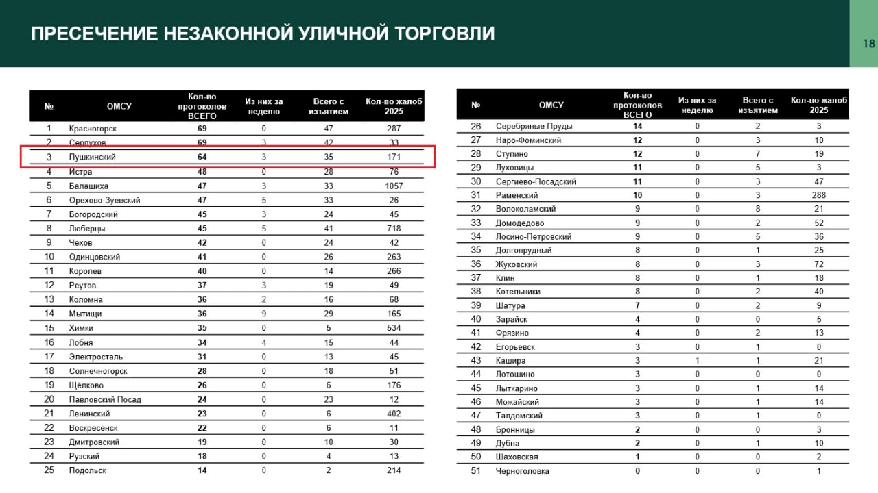 В Пушкинском проводится большая работа по трансформации нестационарной торговли. Правительство Московской области поставило перед нами задачу на этот год – демонтировать 151 нестационарный торговый объект. На сегодняшний день план выполнен на 72%.