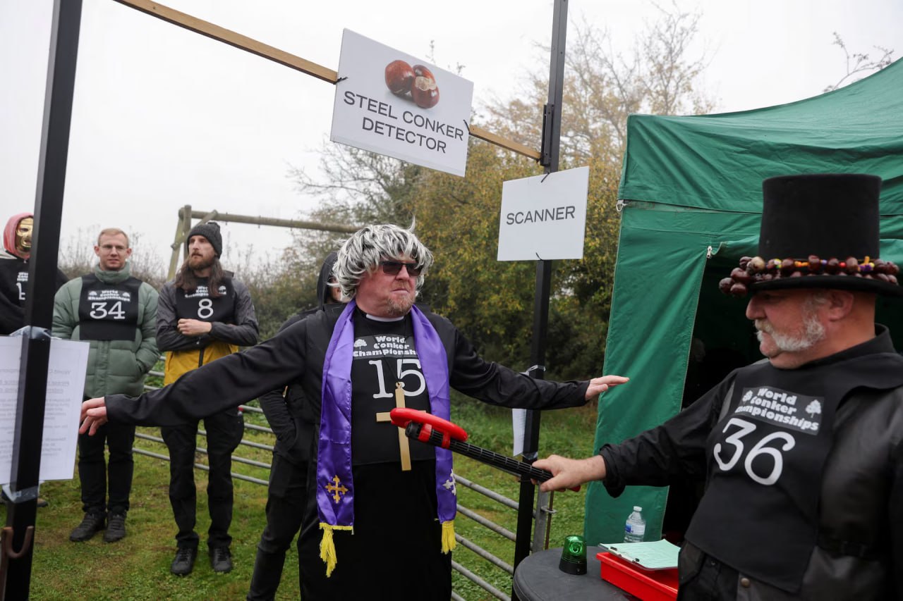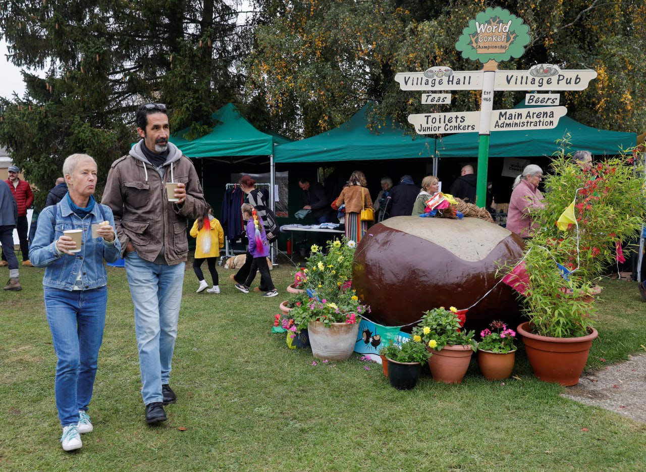 В этом году британские конские каштаны из-за необычно сухого и жаркого лета не принесли привычного урожая, и организаторы чемпионата мира по конкеру уже опасались, что мероприятие, возможно, придется отменить.