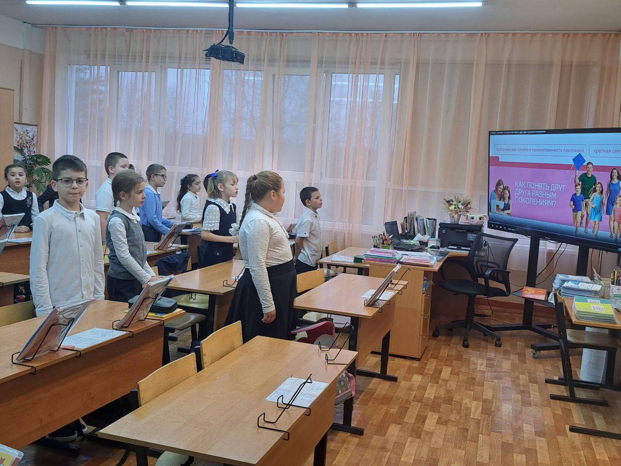 В классах прошли занятия из цикла «Разговоры о важном» на тему: "Как понять друг друга разным поколениям". Его посвятили семейным ценностям и важности взаимопонимания между представителями разных поколений.
