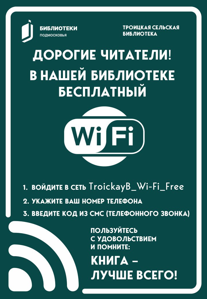 Подключиться к Wi-Fi сети в Троицкой библиотеке возможно с помощью идентификации пользователя