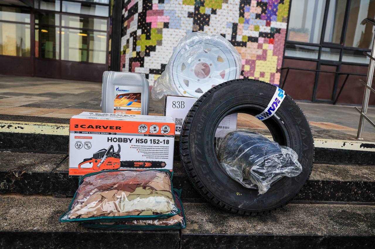 При поддержке партии «Единая Россия», общественных организаций, предпринимателей и неравнодушных жителей были приобретены колеса, покрышки и масла для автомобилей, запчасти для грузовой техники, шанцевые инструменты, бензопилы, дизельный генератор, газовые баллоны, укрывные материалы, а также маскировочные сети. Все это сейчас особо необходимо военнослужащим для выполнения поставленных задач и организации быта.