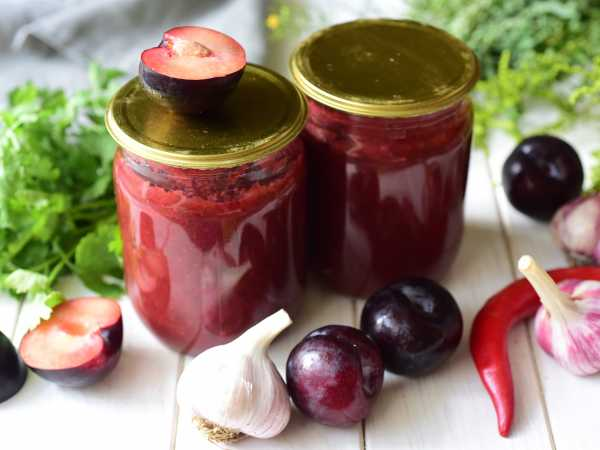 Процесс приготовления аналогичен: сливы необходимо довести до мягкости, затем протереть и добавить специи и зелень, варить на слабом огне. Не забудьте, что настаивание соуса придаст ему насыщенный вкус!
