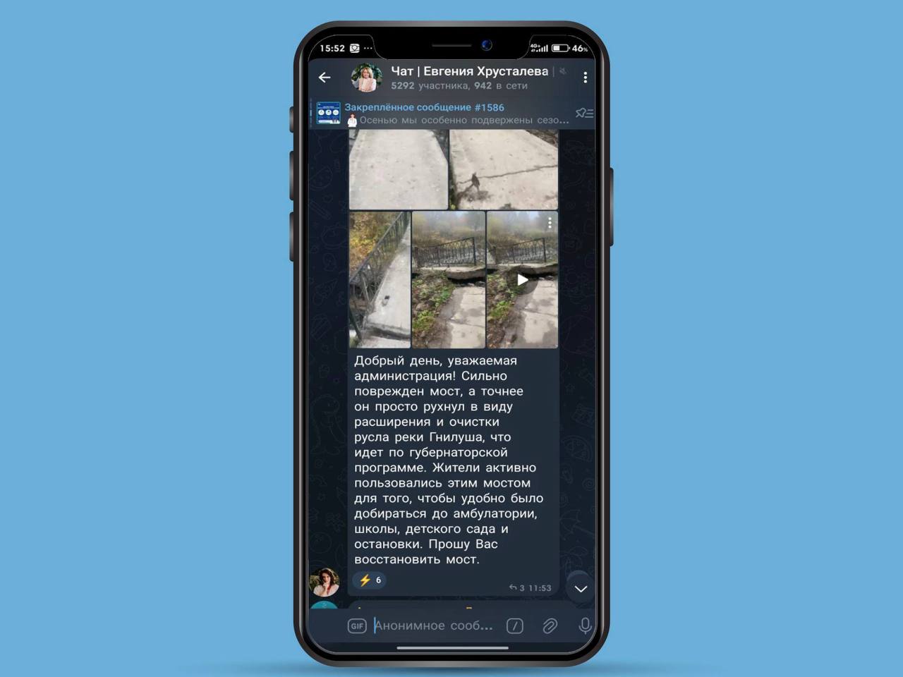 «Жители активно пользовались этим мостом для того, чтобы удобно было добираться до амбулатории, школы, детского сада и остановки. Прошу Вас восстановить мост», – написала жительница.