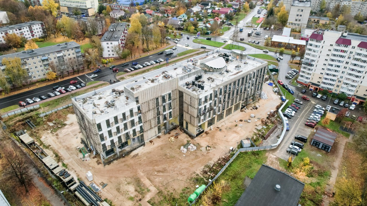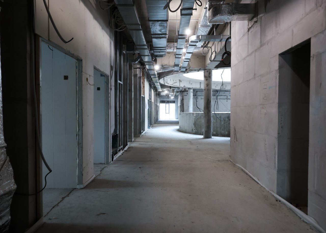 Готовность — 62%. Работаем по президентскому нацпроекту «Продолжительная и активная жизнь». Планируем, что в первом полугодии 2026-го года поликлиника примет первых пациентов.