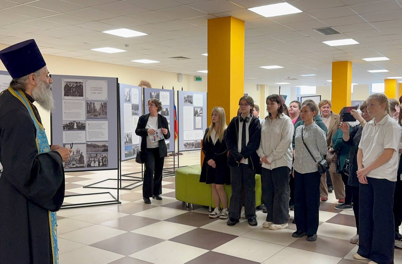 Стенды с фотографиями и информацией о жизни святого патриарха Тихона установлены в холле рядом с актовым залом в инновационном корпусе. Увидеть их можно будет до конца недели.