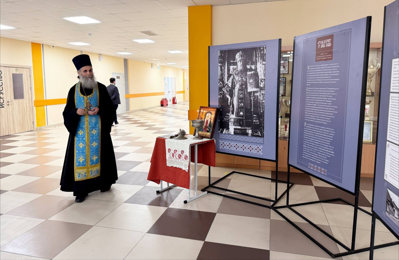 В гимназии имени Подольских курсантов открылась выставка, посвящённая патриарху Тихону