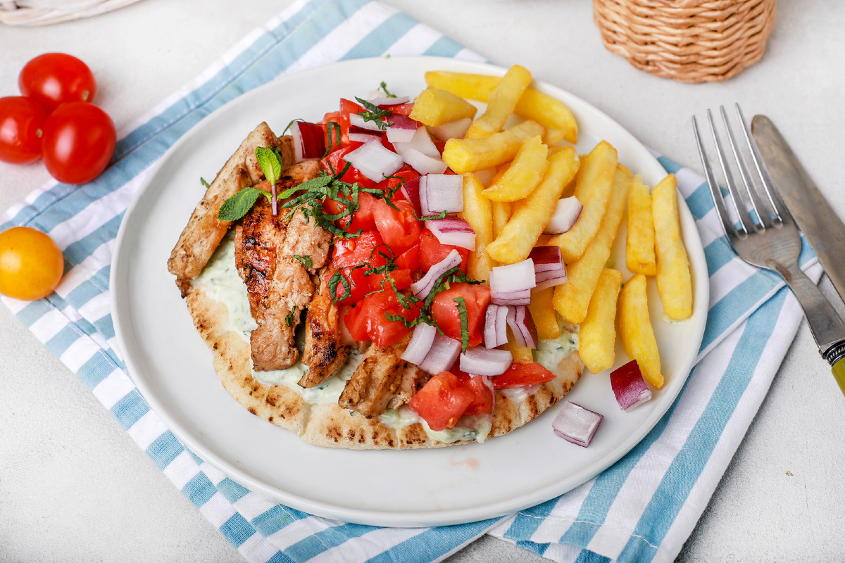 Гирос – это не просто еда, это кулинарная икона Греции, которая завоевала сердца гурманов по всему миру. На подобных уличных ярмарках, этот популярный стрит-фуд можно встретить повсюду. Гирос считается греческим аналогом шаурмы, но вместо привычного лаваша используется более плотная лепешка, что придаёт блюду особую текстуру и насыщенный вкус. Основной акцент здесь, конечно же, на мясо, которое может быть различным.
