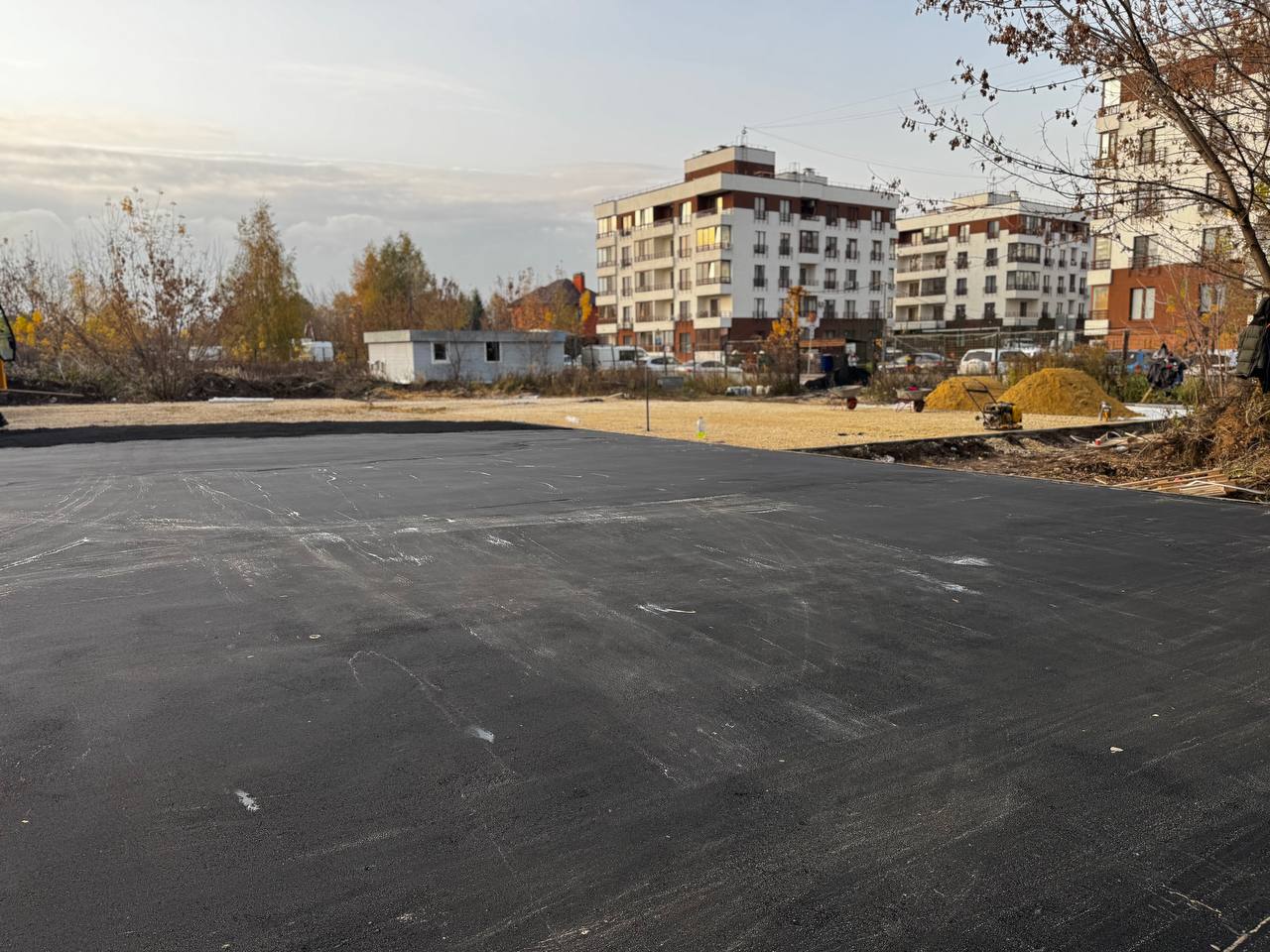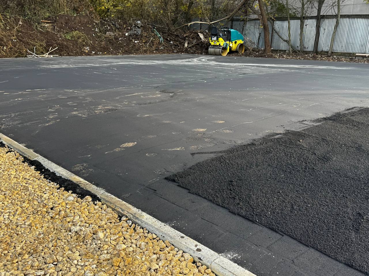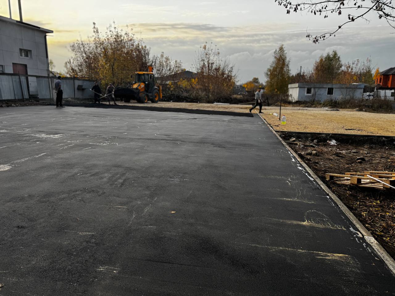 Эти важные объекты будут современными, безопасными и интересными. Специалисты выполняют обустройство основания – укладывают асфальтовое покрытие многофункциональной спортивной площадки общей площадью 450 м . Также выравнено основание детской площадки. Ее площадь 300 м.