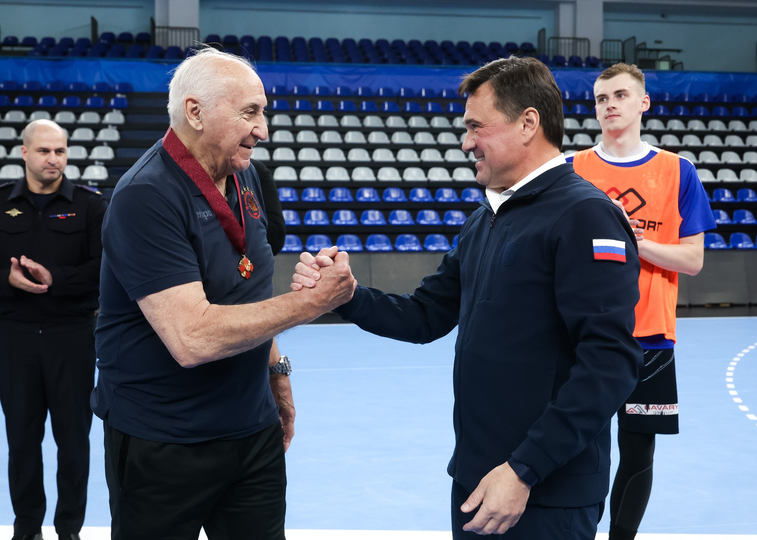 Андрей Воробьев поздравил с 80-летием прославленного советского и российского гандболиста Владимира Максимова и вручил главному тренеру «Чеховских медведей» Орден «За заслуги перед Московской областью» I степени.
