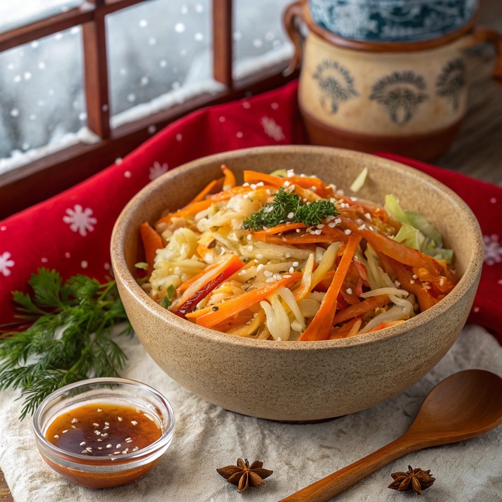 - Тёплый салат из капусты и моркови: Нежный и ароматный, этот салат раскроет все нюансы зимнего доступного урожая. Совершенство в сочетании ярких витаминов и любимых вкусов.