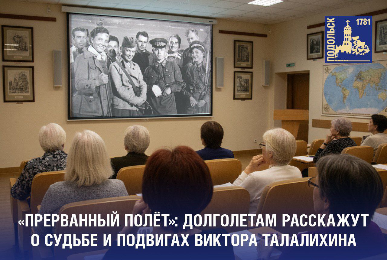 Территориальное отделение клуба «Активное долголетие» по микрорайону Центральный приглашает женщин старше 55 и мужчин старше 60 лет на лекцию «Прерванный полёт», посвящённую 80-летию Великой Победы и Дню памяти Виктора Талалихина.