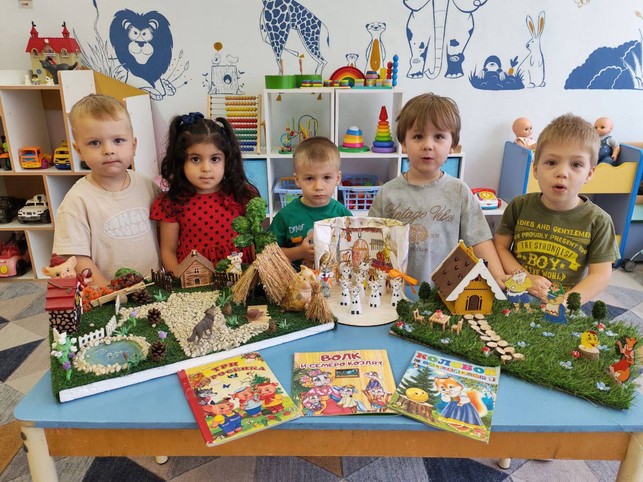 Это волшебный и удивительный мир сказки. Он всегда вызывает у ребят интерес и желание слушать сказку до бесконечности, рассматривать иллюстрации в книжках. И конечно, каждый ребёнок мечтает, хоть на минутку, самому побывать в роли любимого сказочного героя. Детки были в восторге от сказки, а в конце занятия рассмотрели поделки, на тему:"Любимая сказка".