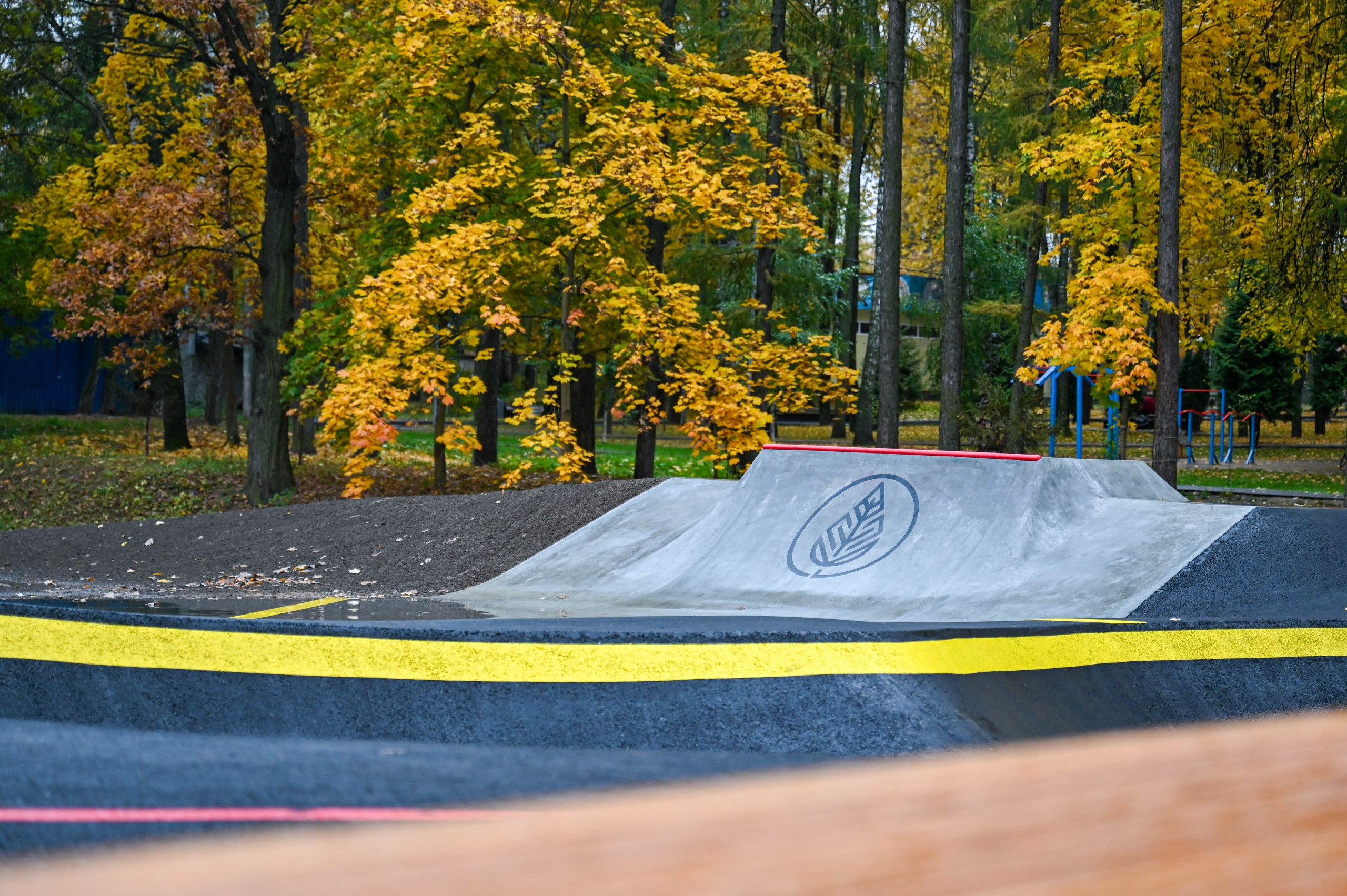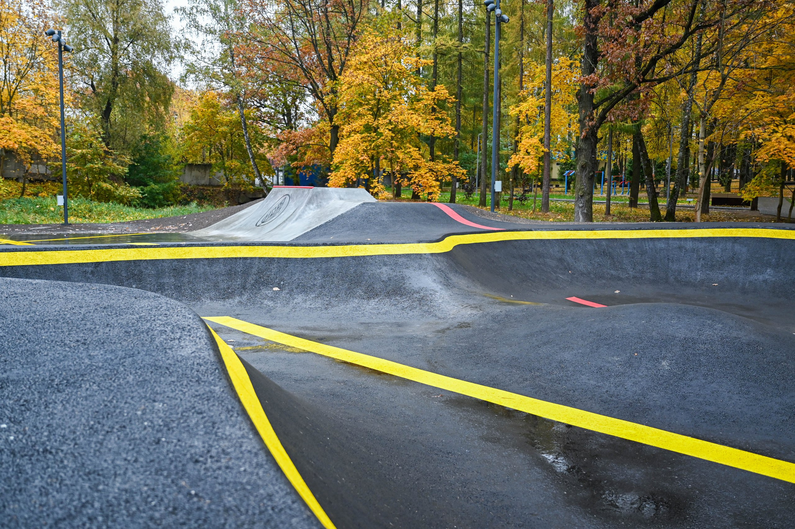 памп-трек с плавным рельефом для катания на велосипедах, самокатах и роликах