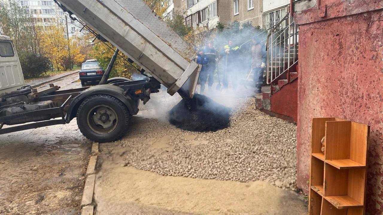 Специалисты определили участок прорыва теплотрассы, который подлежит замене, и выполнили необходимые работы, а после — засыпали участок щебнем и заасфальтировали.