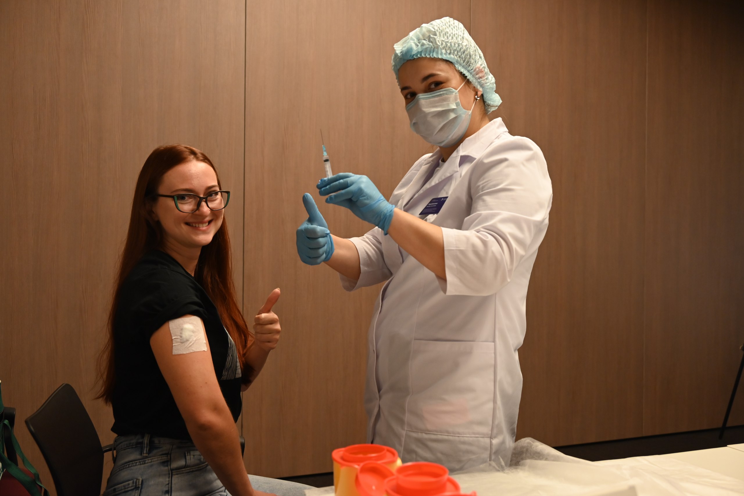 Предварительная запись на вакцинацию проходит через телефон «122» или портал «Здоровье», при себе необходимо иметь паспорт и полис ОМС.